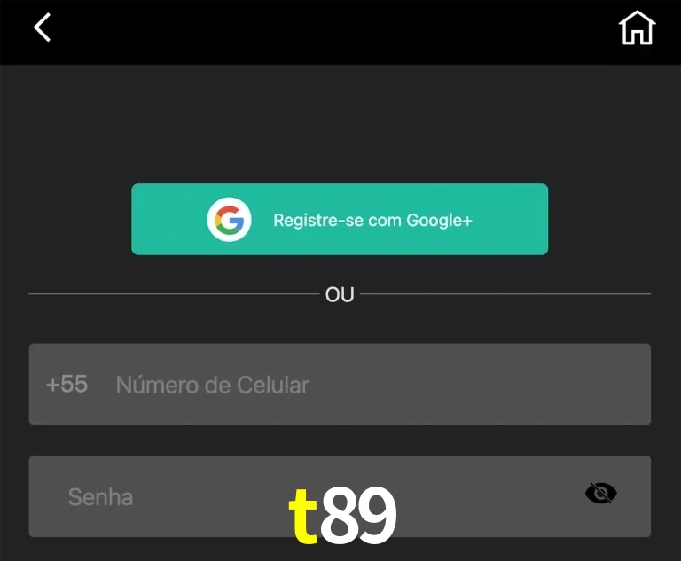 Você também pode se registrar no site do t89 usando seu perfil do Google. Isso permite que você não precise digitar seu telefone e senha, o que acelera o processo de registro.